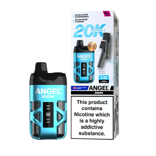 Angel 20K kit provides the same convenience and experience as a disposable vape with a dual flavour system providing upto 20,000 puffs depending on the length of each draw.