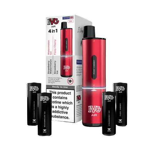 IVG AIR 4-in-1 is the all-new rechargeable vapes which contains pre-filled 4 x 2ml with 20mg Nicotine. It provides flavourful and exciting experience for any vaper . All IVG Air Pods are replaceable with 27 flavours.